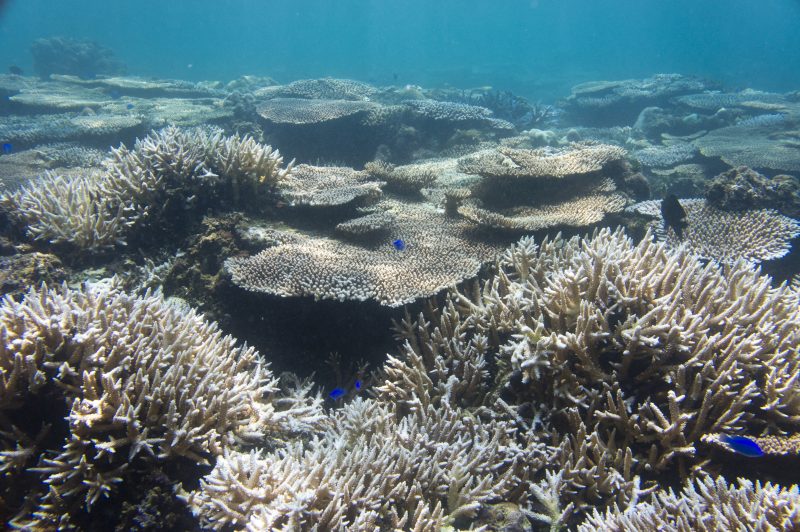 浅瀬のサンゴは今日も今日とて絶賛白化中!