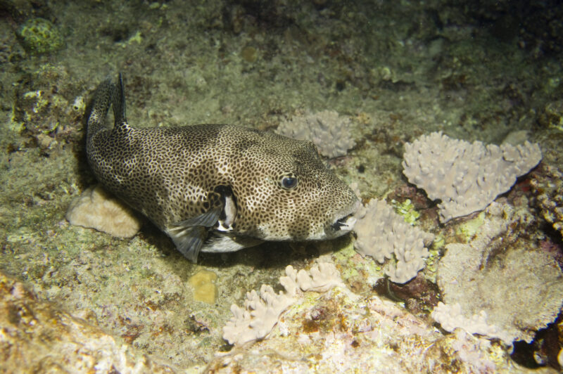 大きなモヨウフグが寝ぼけてふらふら~っと!
