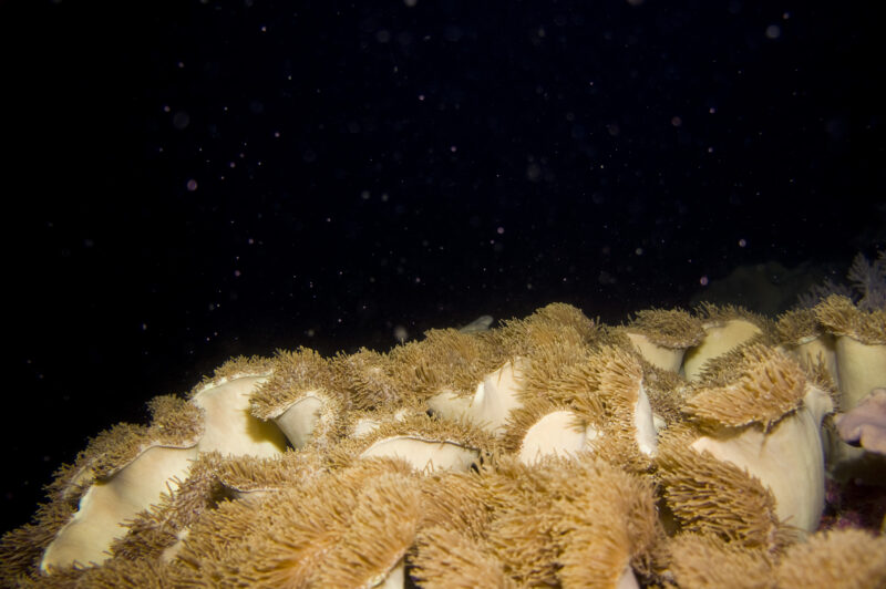 産卵してるソフトコーラルを発見ー!小さいつぶつぶが出て来てるの、わかるかなー??