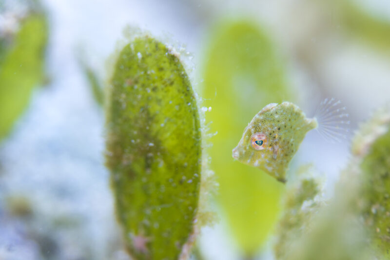 かわいいサイズのカワハギちゃんがウミヒルモ畑でかくれんぼ!