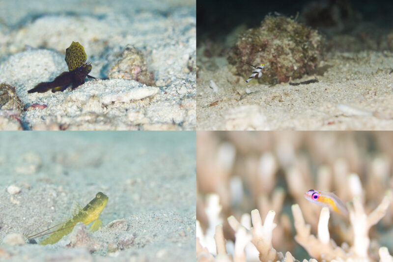 黄色のフタホシタカノハハゼ?睡眠不足のアカメハゼ!