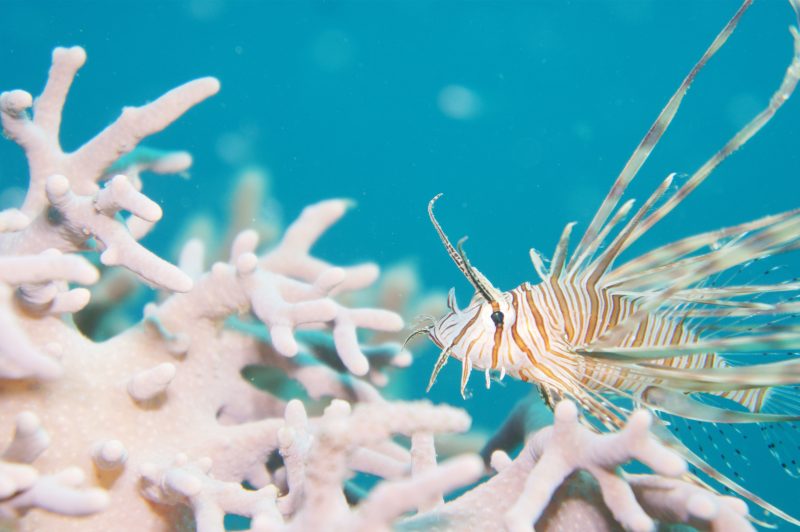 可愛らしいサイズのハナミノカサゴがスカシを狙ってました!