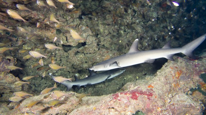 可愛らしいサイズのネムリブカが二匹行ったり来たり!