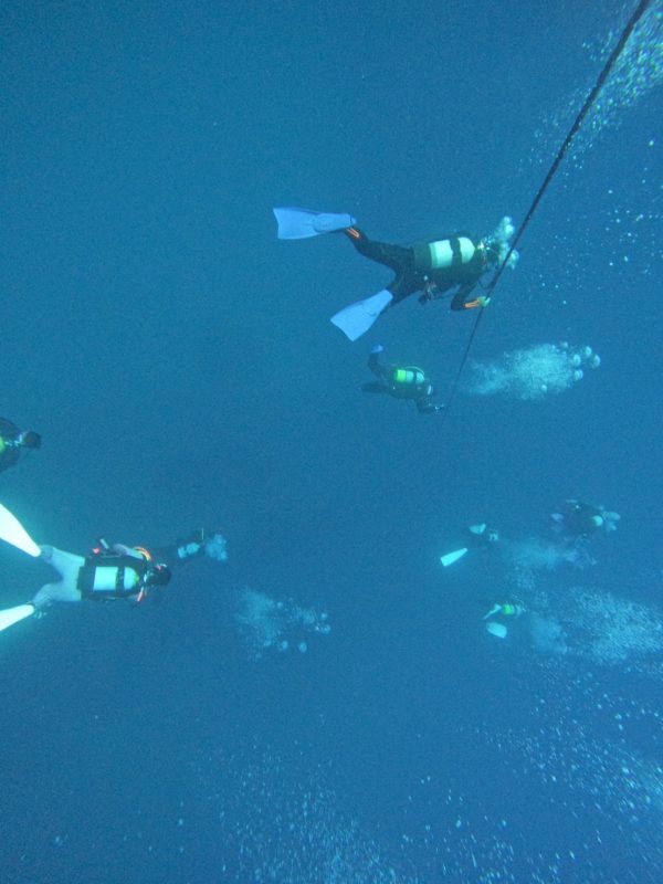 みんなで潜降してる様子です、上級者だけあってみんな上手に潜降してました