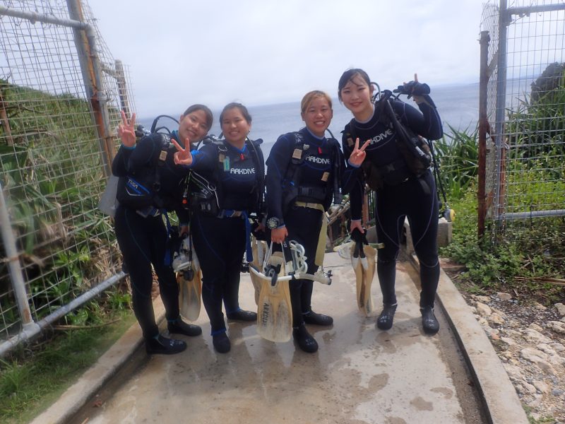 沖縄の海に初めて潜ることができて、本当に楽しかったです。写真で見る海や魚とは違って本物を見ることができて凄く感動しました。はじめは器材をうまく使うことができず、できないかもと思いましたが、最後はすばらしい海を見ながら楽しむことができて本当に幸せでした!教えて下っ去ったクミさんや一緒に泳いださやか、準備して下さった先生やアークダイブの方々のおかげで本当にいい経験をすることができました!本当にありがとうございました!【みーくー】