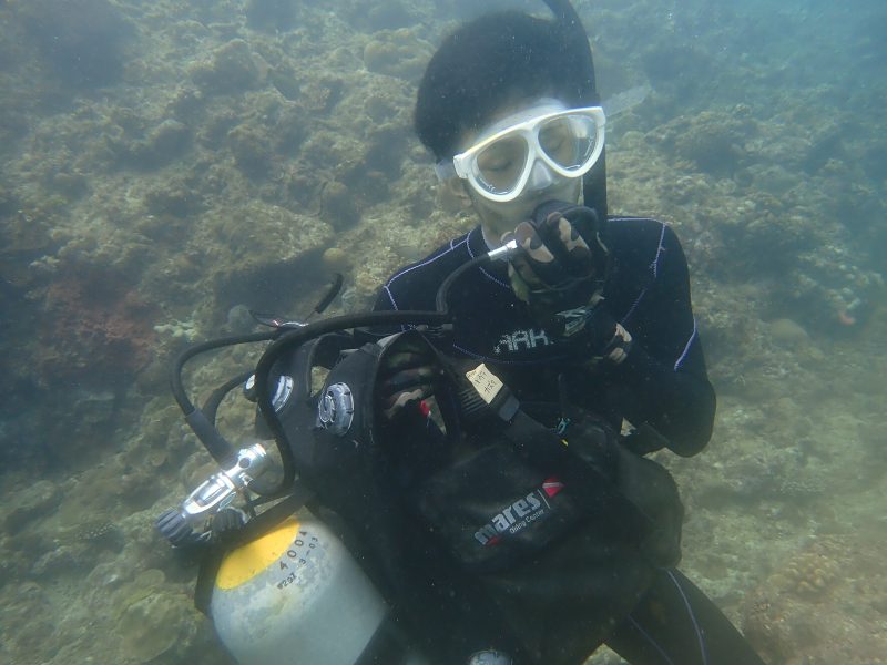 ダイビングの授業をとってみて、初めてダイビングをすることができ感動しました。今まで素潜りをよくしていましたが、ダイビングは全くの別物でした。