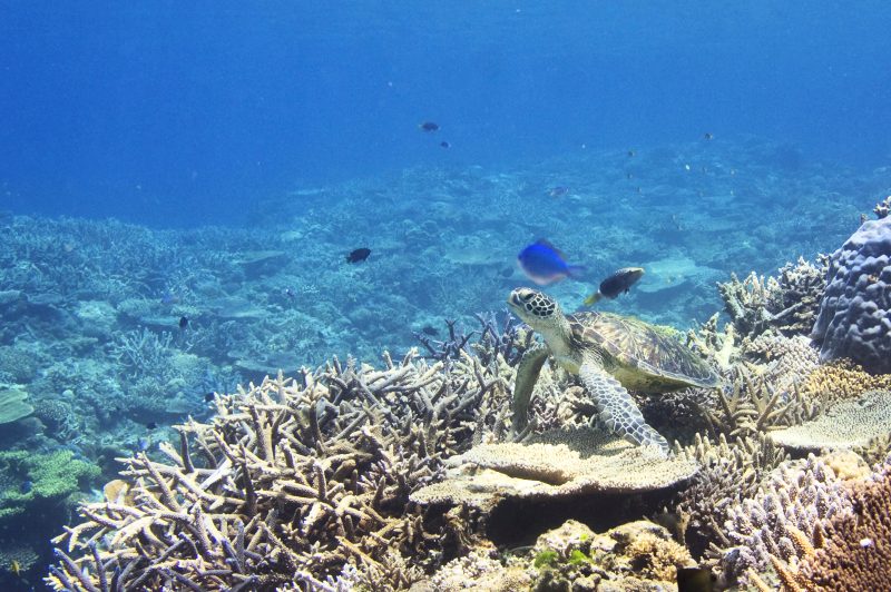 サンゴに囲まれていたカメちゃんはこの後、体験ダイバーに囲まれることになります、、、(笑)