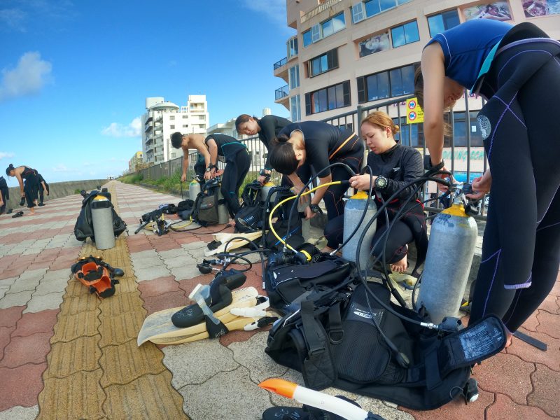 ダイビングの始まりはセッティングっすね。ひろチームは覚えてない人続出で大変でした笑 みんなしっかり覚えろよー!