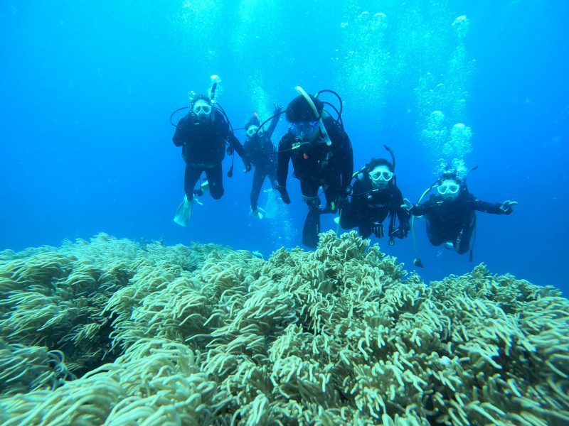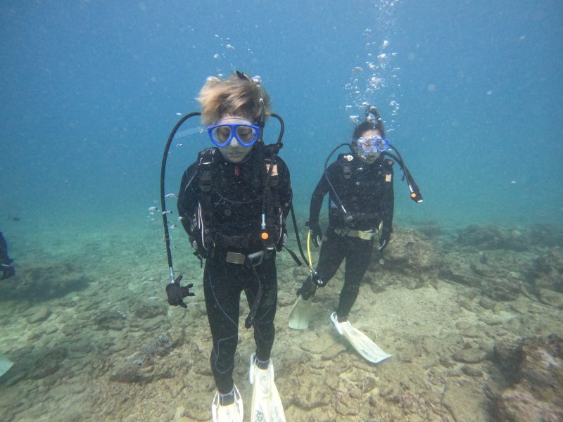海の中は自分が想像してた以上にとてもきれいで水族館の水槽に自分が入っているような感覚でした。初めは泳ぐことや呼吸することに必死でしたが、2日目には周りのサンゴや魚を眺めながらダイビングを楽しむ事ができました。また友達とダイビングに挑戦したいです。ありがとうございました。【はなちゃん】