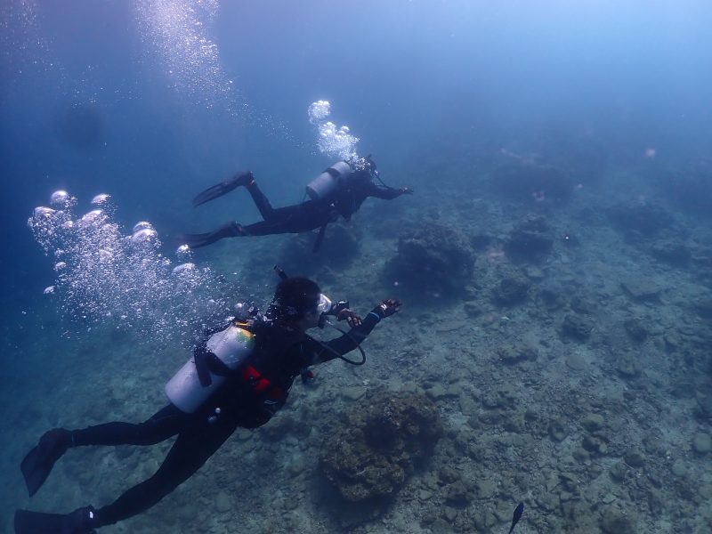 初めは潜降時に怖いと感じましたが、慣れてくると楽しくダイビングをすることができました!!マスクやBC脱着の時に少し焦ってしまったので落ち着いて行うことを意識します。ありがとうございました^^【まなよし】